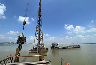 華津黑色金屬碼頭首根鋼管樁成功入海
